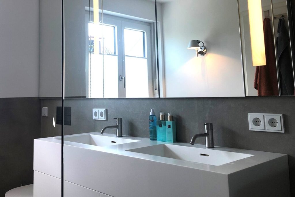 BELTA Bau- und Generalunternehmer Umbau in Planegg. Wir haben dieses Haus in Planegg saniert und dabei eine Feuchtigkeitssanierung im Untergeschoss durchgeführt. Wir haben auch die Planung und Bauleitung übernommen. Die ausgeführten Arbeiten umfassten Abbrucharbeiten, Trockenbauarbeiten, Verputzarbeiten, Elektroinstallation, Sanitärinstallation, Fliesenarbeiten, Malerarbeiten und Fensterbauarbeiten.